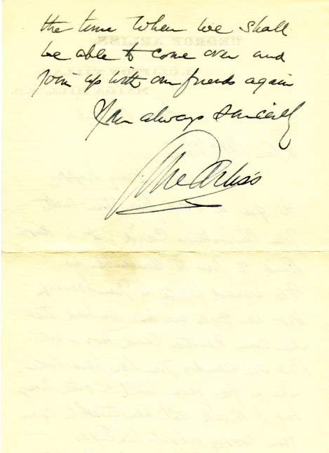 “…the time when we shall be able to come over and join up with our friends again. Yours always sincerely, Geo Arliss”