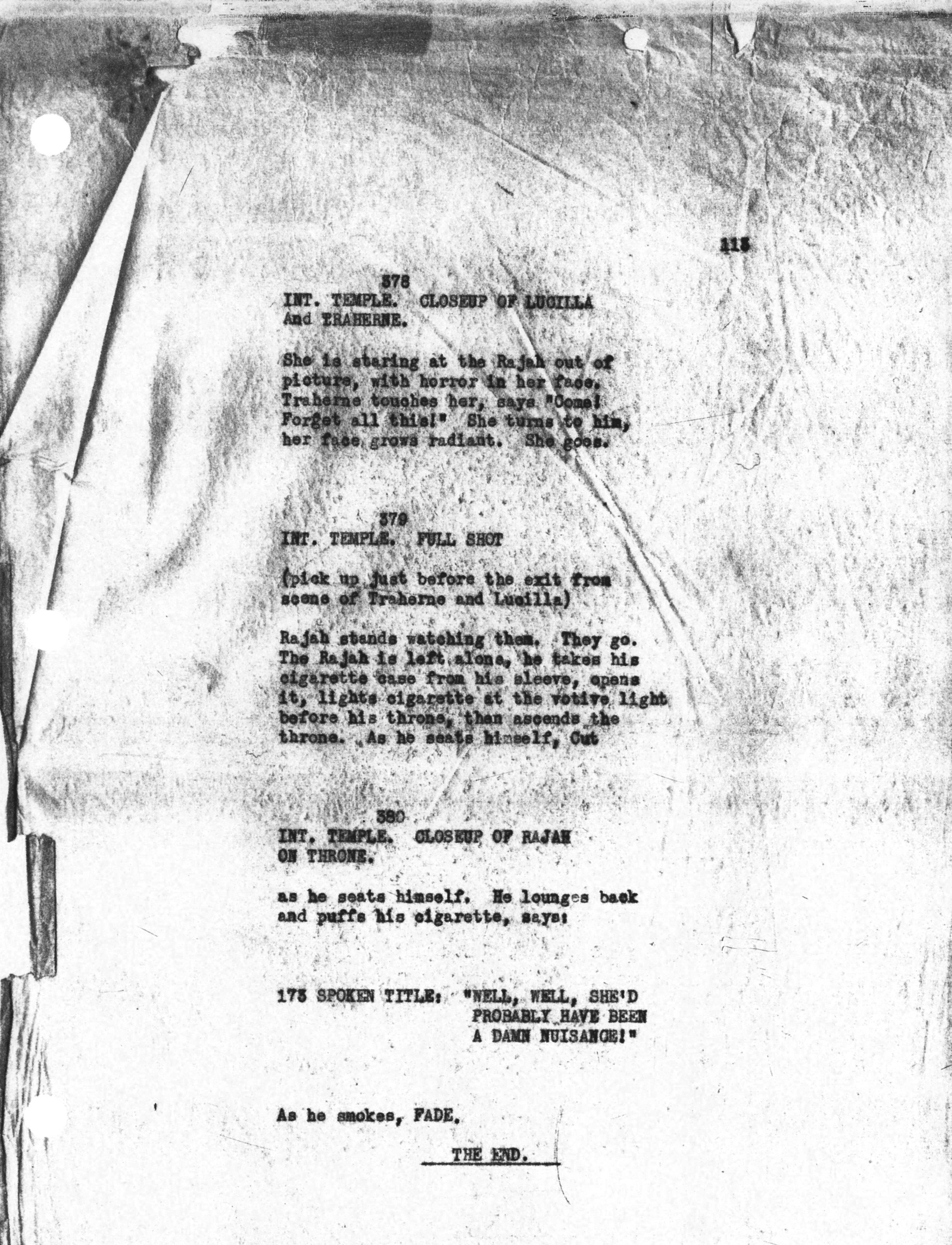 Finally, a rarity – the last page of the silent film script. Notice that Arliss’s exit line is faithfully preserved: