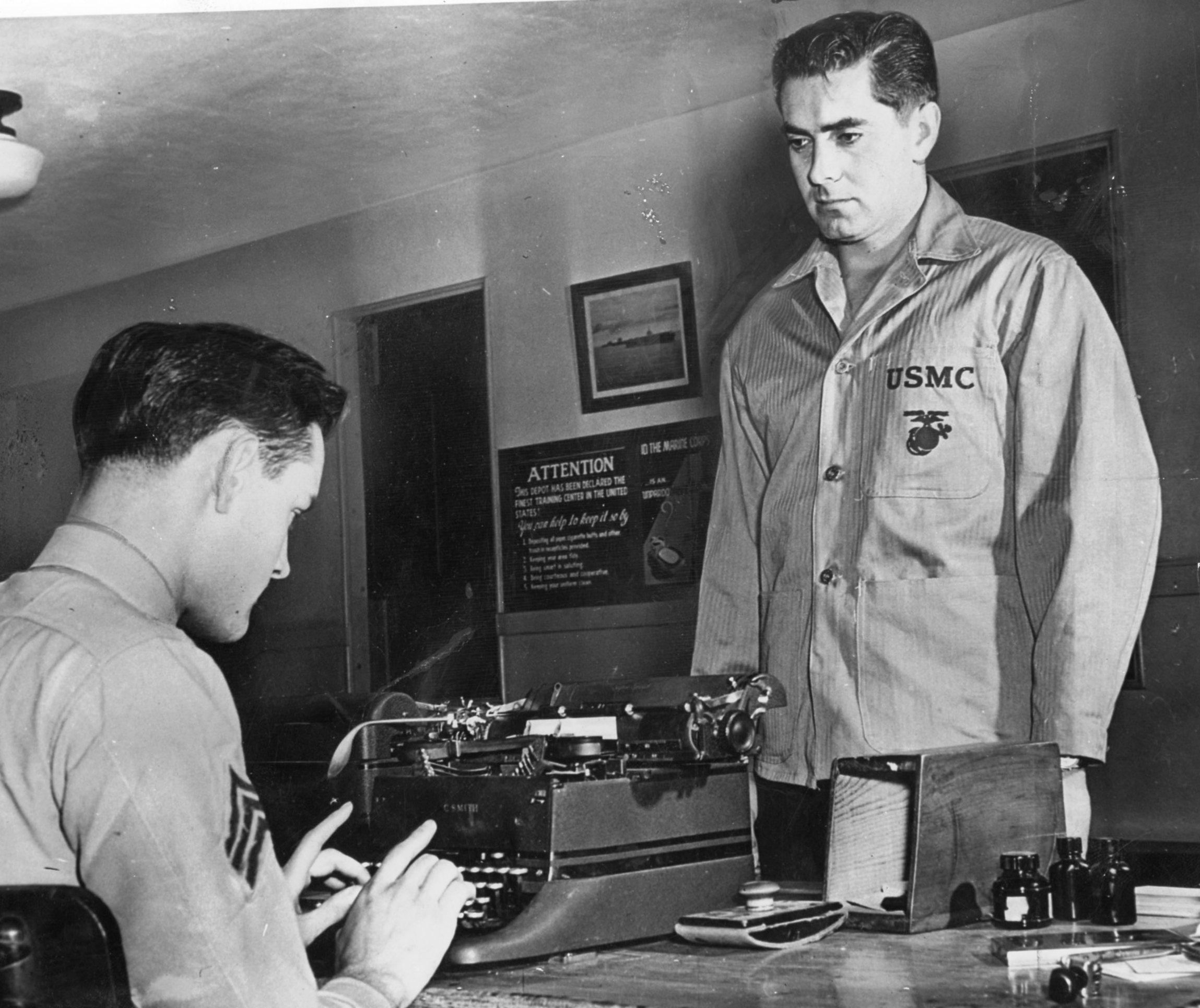 A few years later, here is an unretouched news photo of Mr. Power reporting for duty to the U.S. Marines during World War II: