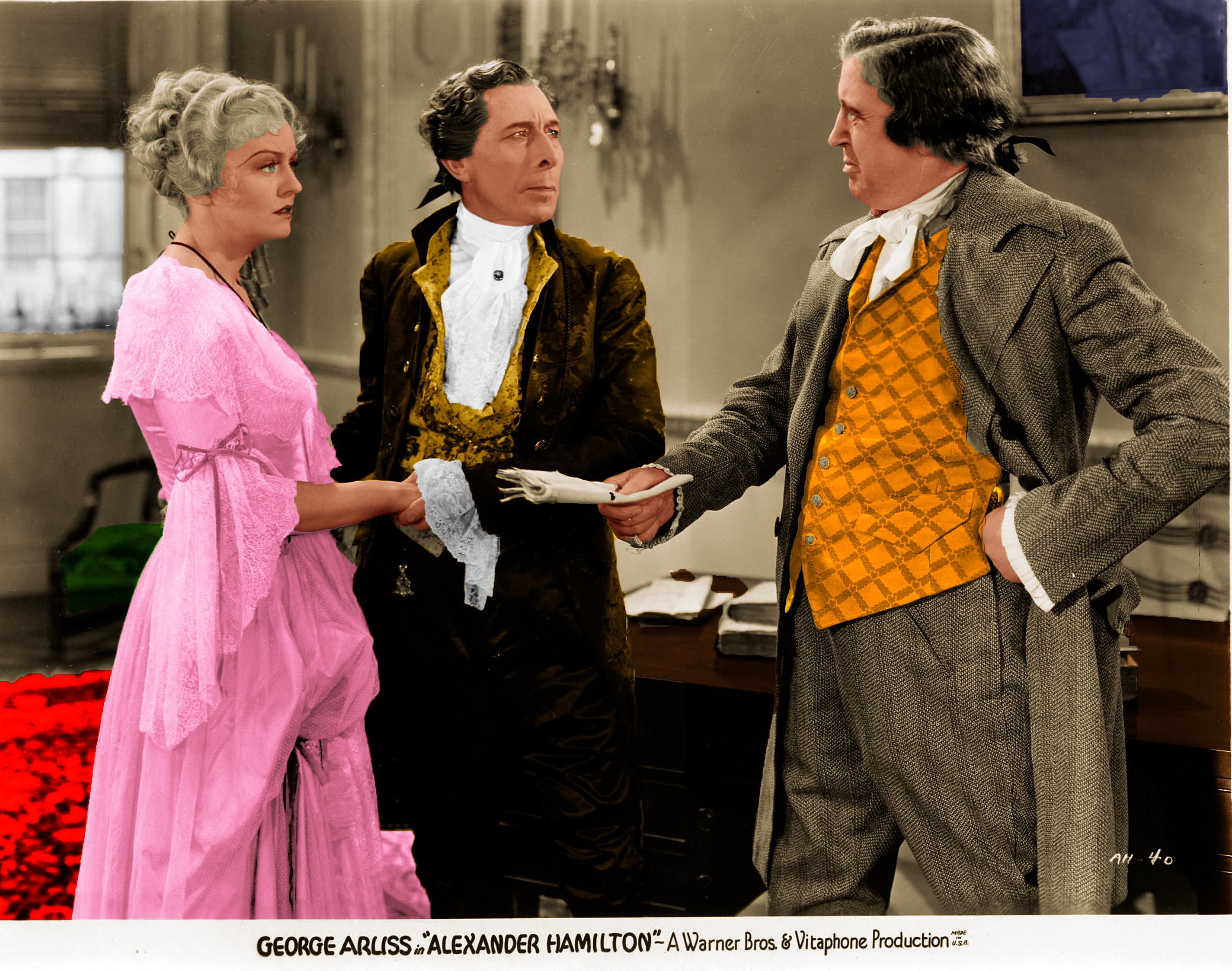 Eight years later in 1791, the temporary capital of the U.S. is located in Philadelphia; Washington is the first President and Hamilton is the first Secretary of the Treasury. He is also married to Betsy, played by silent screen star Doris Kenyon: